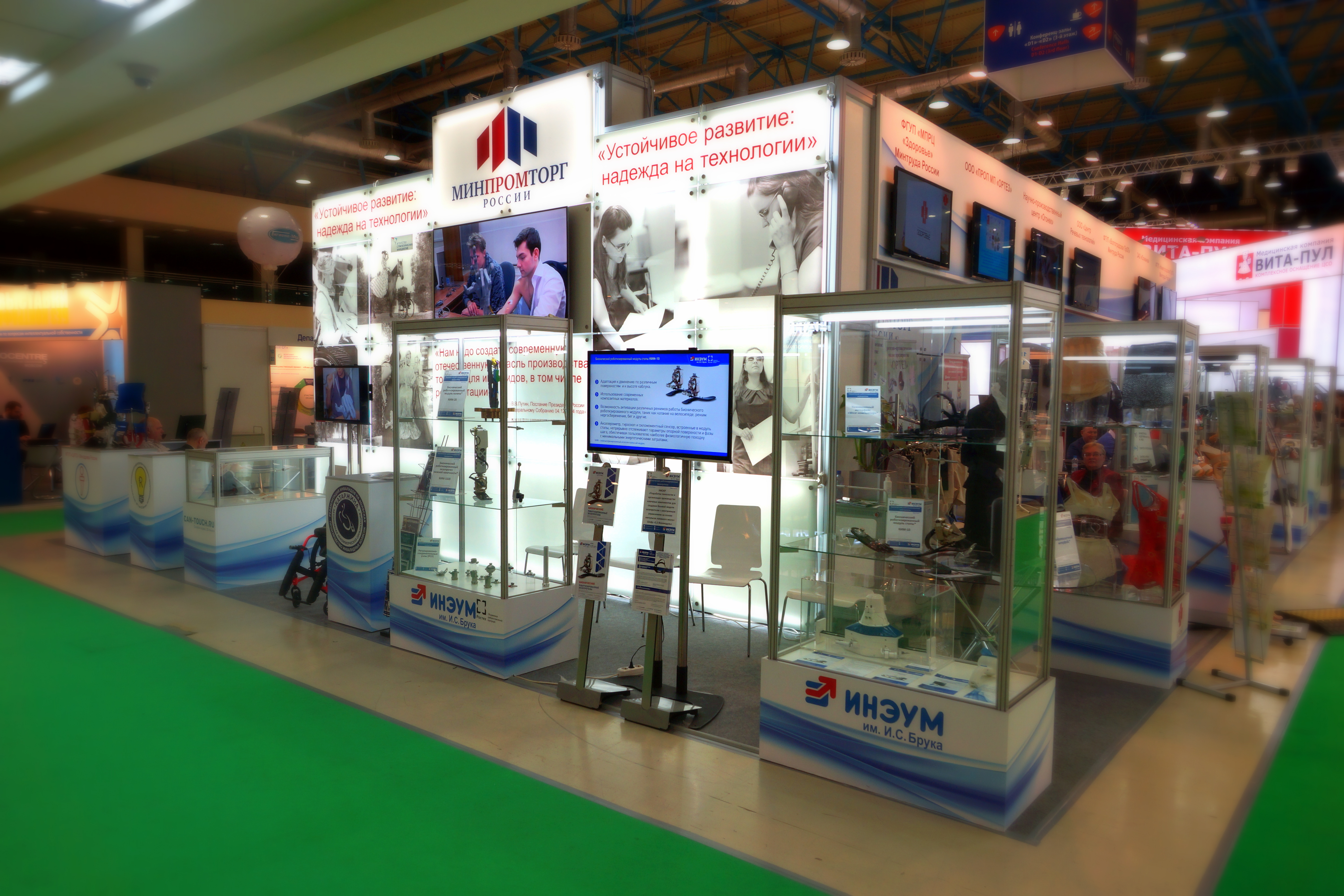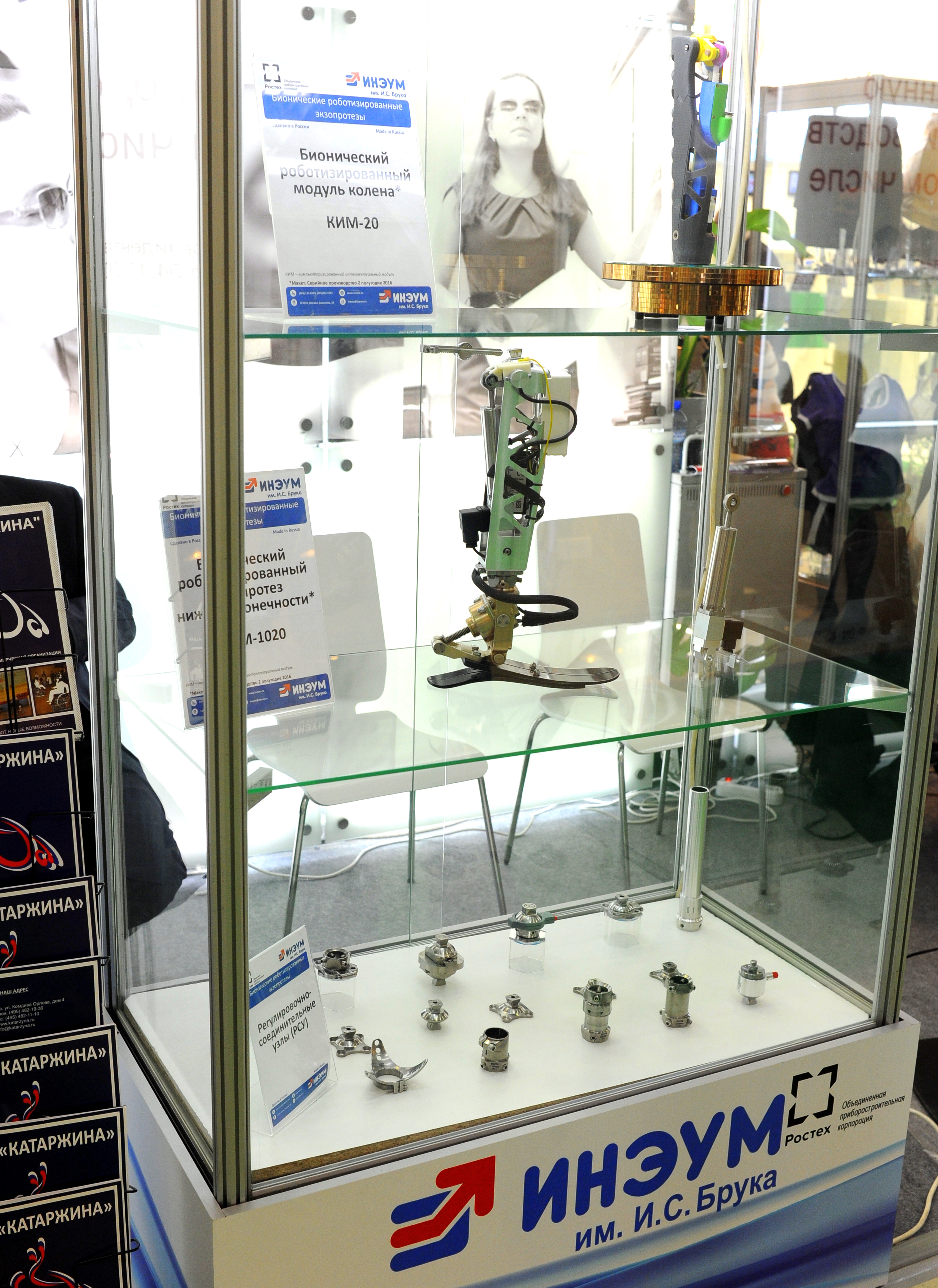 Разрабатываемые ОАО «ИНЭУМ им. И.С. Брука» Бионические роботизированные экзопротезы были продемонстрированы на объединенном стенде Минпромторга РФ.