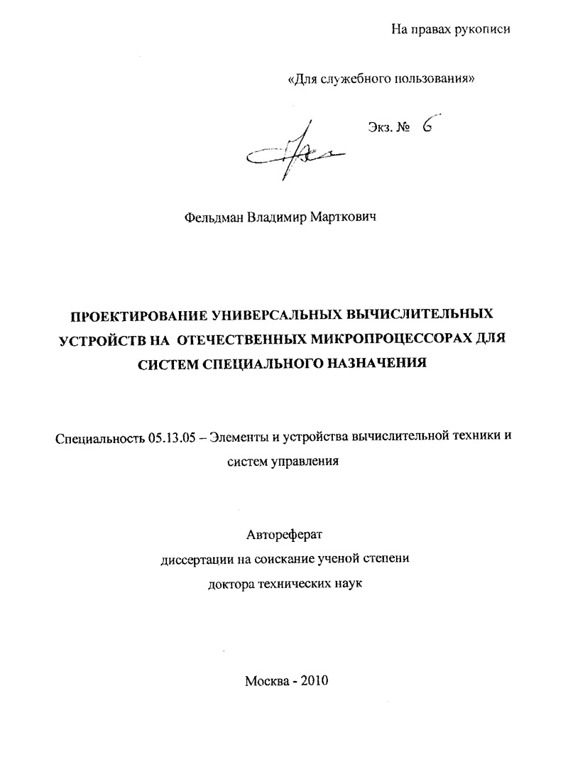 Фельдман Владимир Марткович Диссертация на соискание ученой степени доктора технических наук. Специальность 05.13.05 (технические науки). Защита состоялась 20 ноября 2010 г.