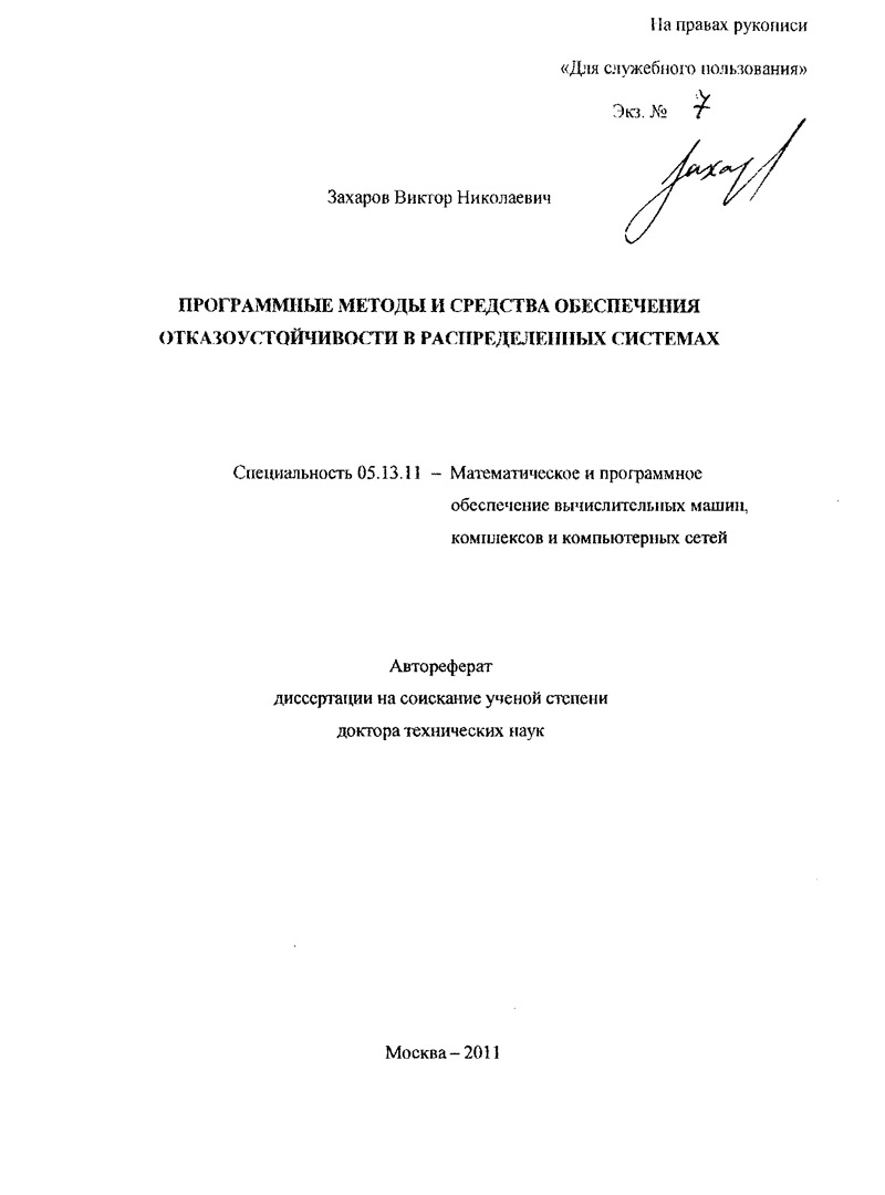Захаров Виктор Николаевич Диссертация на соискание ученой степени доктора технических наук. Специальность 05.13.11 (технические науки). Защита состоялась 6 апреля 2011 г.