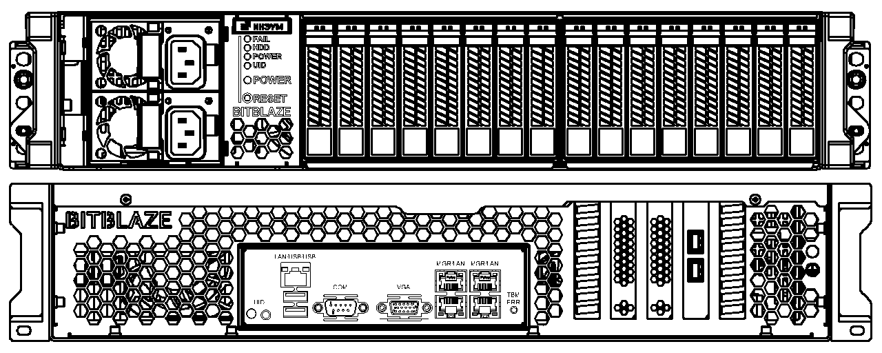 | Внешние интерфейсы | 2 порта сети Ethernet 10GBase-SR с разъёмами LC 3 порта сети Ethernet 1000Base-T с разъёмами RJ45 2 порта сети Ethernet 100Base-TX с разъёмами RJ45 от МУС 2 порта периферии USB 2.0 с разъёмами типа A 1 порт консоли RS-232 с разъёмом DE-9 от сервера 1 порт консоли RS-232 с разъёмом DE-9 от МУС (опция) 1 порт видео VGA с разъёмом DE-15 |